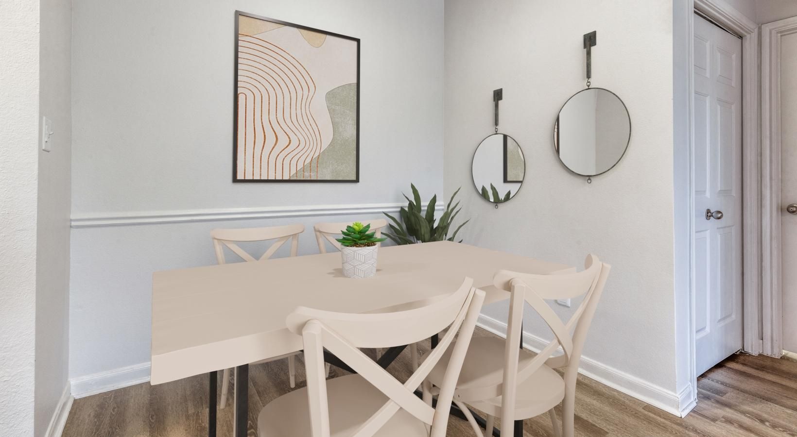 • a dining table with chairs