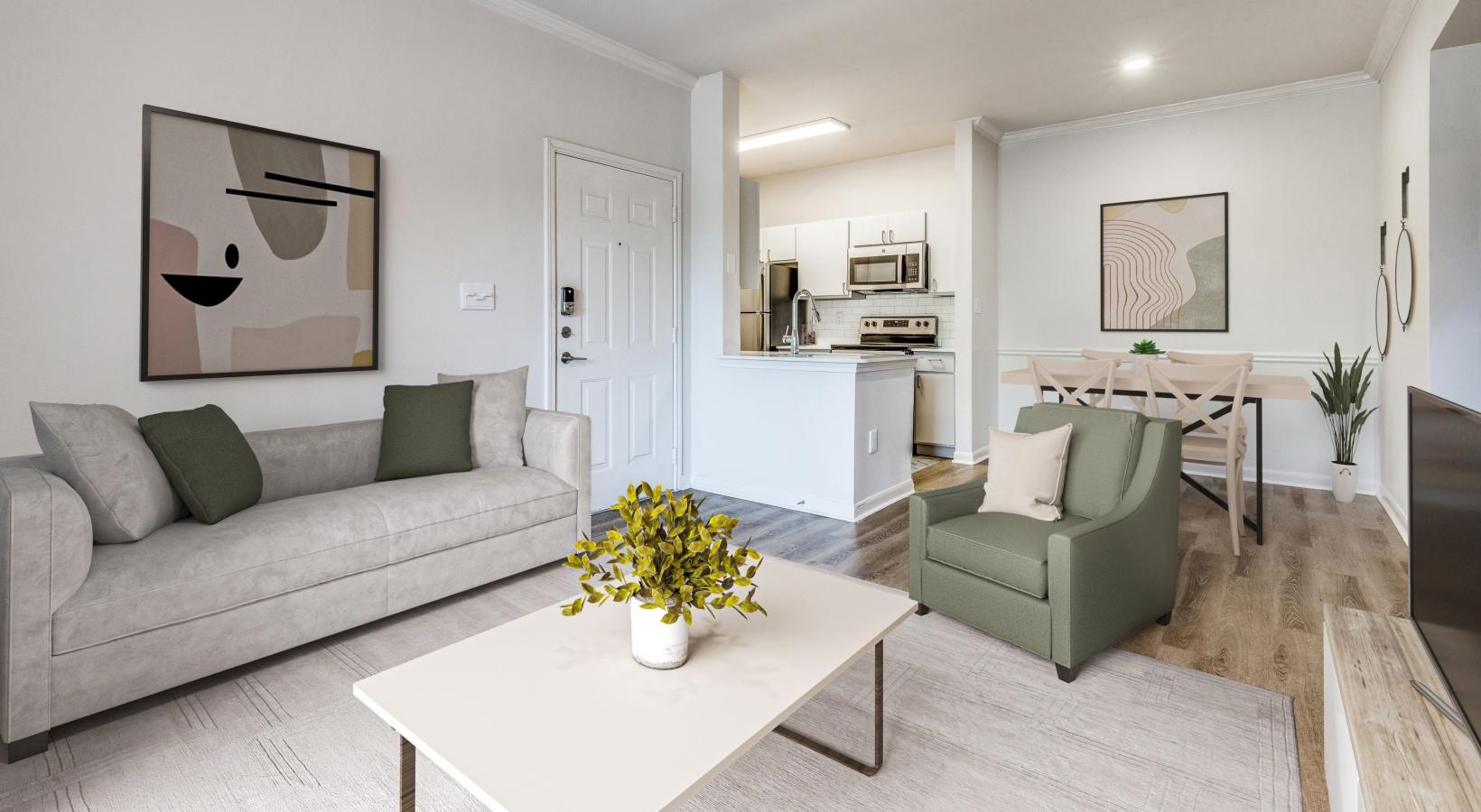 • a living room with a couch and a table