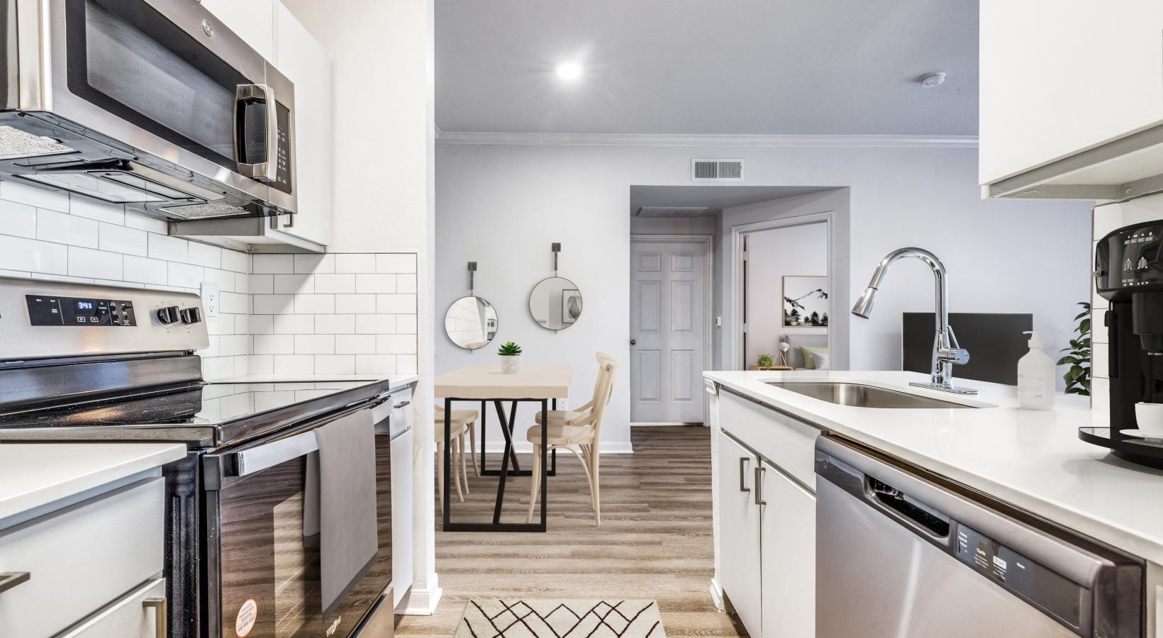 • a kitchen with white cabinets